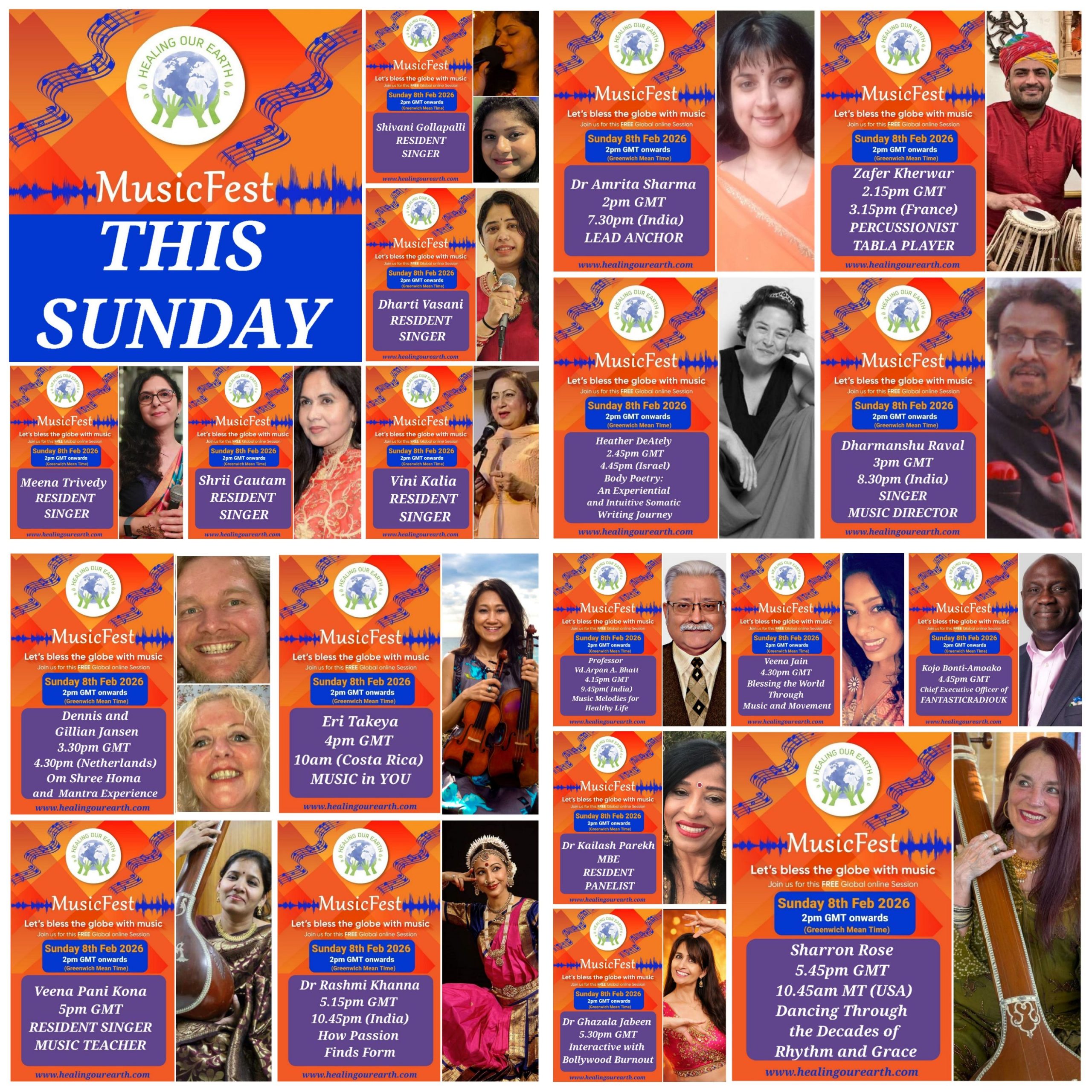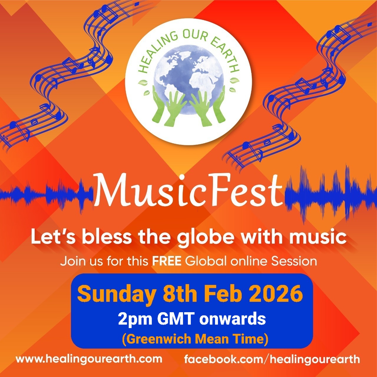 MusicFest 2026 is coming soon! Healing Our Earth invites you to join a FREE global online music celebration on Sunday 8th February 2026 at 2:00 pm GMT (Greenwich Mean Time).